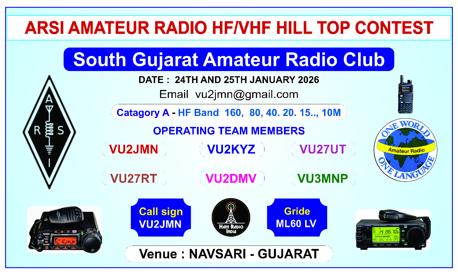 Date: January 23, 2026 Category A: HF Bands: 160, 80, 40, 20, 15, 10 M Operation callsign – VU2JMN The wait is finally over! This weekend, January 24th and 25th, 2026, our team is hitting the field for the ARSI National Field Day & Hill Topping Contest. We are excited…